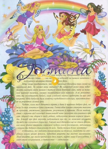 Ца чарівна книга сповнена секретів і таємниць із життя фей, без знання яких за спиною не виростуть прозорі крильця. Кожна маленька має засвоїти правила поведінки та навчитися основам чарівництва. У такій відповідальній справі без "Енциклопедії маленької феї" просто не обійтися.