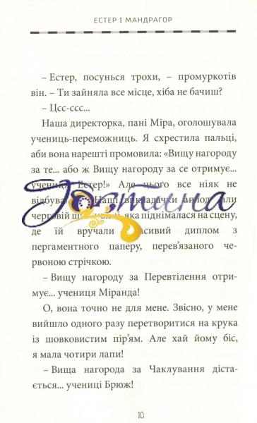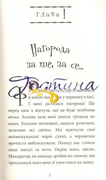 У Школі чаклунок відповідальний день: відзначення найкращих учениць. Уперше Вищу нагороду за Допитливість вручають одній із них – Естер Фльордефер. І як заохочення її відправляють в Інший світ, але з однією умовою: ніхто не має заскочити її під час використання магії. Тож разом зі своїм котом Мандрагором, що вміє розмовляти, вона вирушає у Світ людей. Але ж як важко стриматися від того, щоб не використати заклинання, адже вони часом так потрібні! Особливо якщо треба допомогти маленькій дівчинці і її кошеняті знайти одне одного. Добра й весела історія про дружбу й магію, про співчуття і взаємовиручку відправить юних читачів у світ чарівництва.