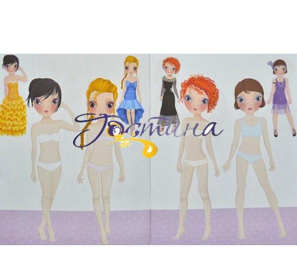 По-друге, на 28 сторінках цієї книги нас чекають чарівні моделі- блондинки, шатенки, брюнетки – з оригінальними зачісками і вечірнім макіяжем. Тут же приклади вже готових для «виходу у світ» довершених модельних образів. Їх можна повторити, використовуючи для цього відповідні наліпки.