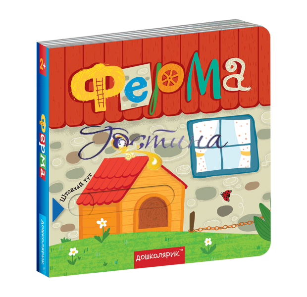 Видання ознайомить малят з різними свійськими тваринами. У розвивальній книжці-грі «Ферма», яка містить рухомі елементи для занять із дітлахами 2+, на кожній сторінці є подвійний висувний елемент з барвистими ілюстраціями, які доповнюють коротенькі віршики Сергія Цушка та Василя Федієнка про мешканців ферми. Такі видання захоплять будь-якого малюка, адже в них — веселі малюнки, чудові вірші-загадки, а головне — кожна сторінка має свій секрет-відгадку. Інтерактивні елементи сприятимуть розвитку дрібної моторики, пам’яті та уваги дошкільнят.