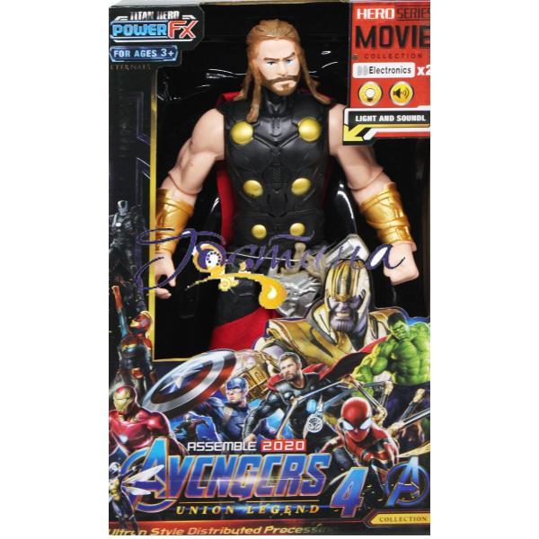 Фігурка у вигляді супергероя всесвіту "Марвел", фільму "Месники". Виконана із пластику, добре деталізована. Руки та ноги рухливі. Зі світловими і звуковими ефектами (світиться лампочка на грудях, звуки битви). Висота фігурки – 30 см. Для дітей від 3-х років.