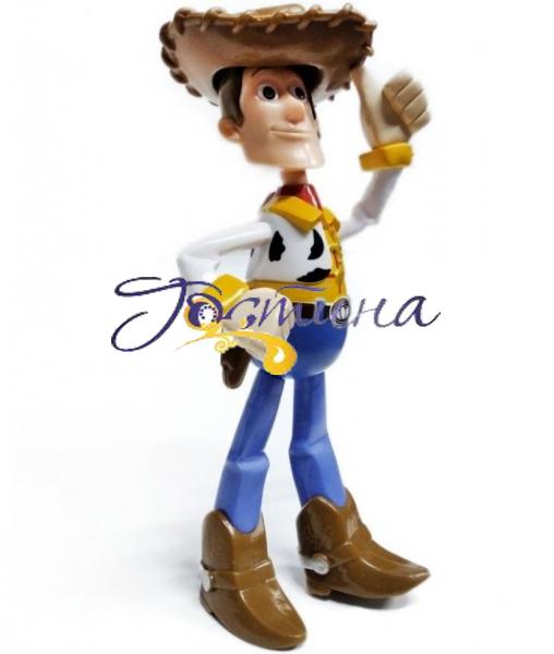 Фігурка Шерифа Вуді Прайду з улюбленого дитячого мультфільму "Історія Іграшок". Герой вміє ворушити ручками і ніжками, знімається капелюх, а на спині є кнопка з музичним супроводом і підсвічуваннями.