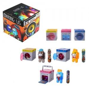 Ігровий набір-сюрприз з персонажами популярної гри "Among Us". У комплекті: коробочка, рандомних фігурка героя і скейт. З 6-ти можливих варіантів може попастися будь-який персонаж. Набір виготовлений з якісних і безпечних матеріалів.