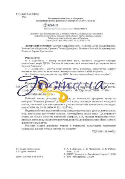 Фiнансова грамотність 5 клас. Робочий зошит. Родинні фінанси (Укр) Мандрівець