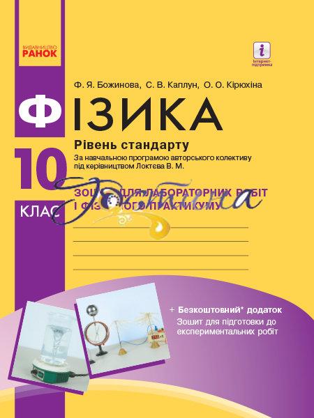Посібник відповідає вимогам навчальної програми «Фізика» авторського колективу під керівництвом В. М. Локтєва і призначений для організації навчання в 10 класі на рівні стандарту. Зошит є складовою навчально-методичного комплекту «Фізика. 10 клас », створеного на базі підручника під редакцією В. Г. Бар'яхтара, С. А. Довгого. Зошит містить опису 9 експериментальних робіт, а також методів обчислення похибок вимірювання. До посібника додається зошит для підготовки до експериментальних робіт, в якому представлені завдання для проведення підготовчого етапу кожної роботи. Посібник має інтернет-підтримку, матеріали якого допоможуть реалізувати особистісно орієнтований підхід до навчання. Призначено для учнів 10 класу установ загальної середньої освіти, вчителів фізики.