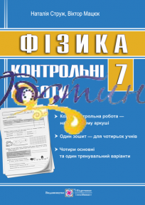 Посібник містить 5 тематичних контрольних робіт, кожна з яких складається з п’яти рівноцінних варіантів. Завдання дібрано відповідно до чинної програми, підручників та методичних рекомендацій. Для учнів 7 класу, учителіви фізики.