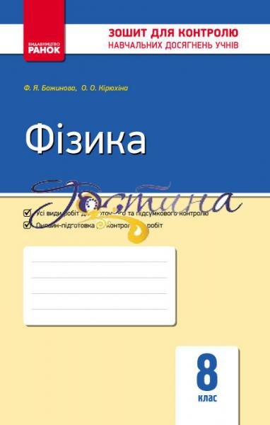 Зошит відповідає вимогам нової програми з фізики для 8 класу загальноосвітніх навчальних закладів і призначений для поточного і тематичного контролю навчальних досягнень учнів з фізики. Посібник складається з двох частин: поточний контроль знань і контрольні роботи.