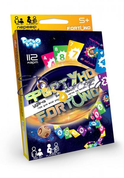 «ФортУно» - гра, котра завжди проходить весело, азартно, а головне, кожен раз по-новому. У «ФортУно» можуть грати як дорослі, так і діти. Правила дуже прості: ваша головна задача - першим позбутися всіх карт і перешкодити зробити це іншим гравцям. Ви можете використовувати різні активні карти, щоб залишити інших гравців у грі. Можна покласти пропуск ходу, поміняти напрямок ходу гри й багато іншого. Але найголовніша карта у цій грі - ФортУно яка може, як наблизити вас до перемоги, так і навпаки!А щоб про це дізнатися, треба кидати кубик!