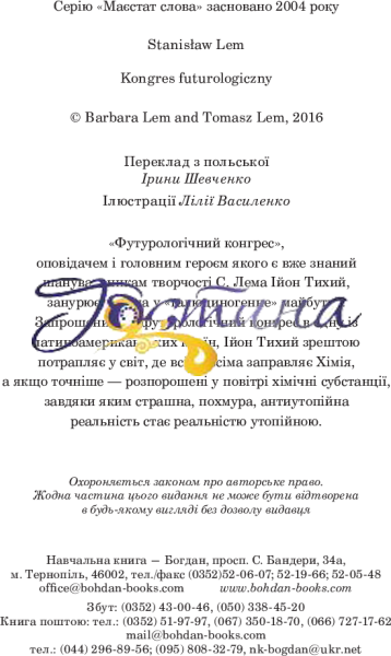 «Футурологічний конгрес», оповідачем і головним героєм якого є вже знаний шанувальникам творчості С. Лема Ійон Тихий, занурює читача у «галюциногенне» майбутнє. Запрошений на футурологічний конгрес в одну із латиноамериканських країн, Ійон Тихий зрештою потрапляє у світ, де всім і всіма заправляє Хімія, а якщо точніше — розпорошені у повітрі хімічні субстанції, завдяки яким страшна, похмура, антиутопійна реальність стає реальністю утопійною.