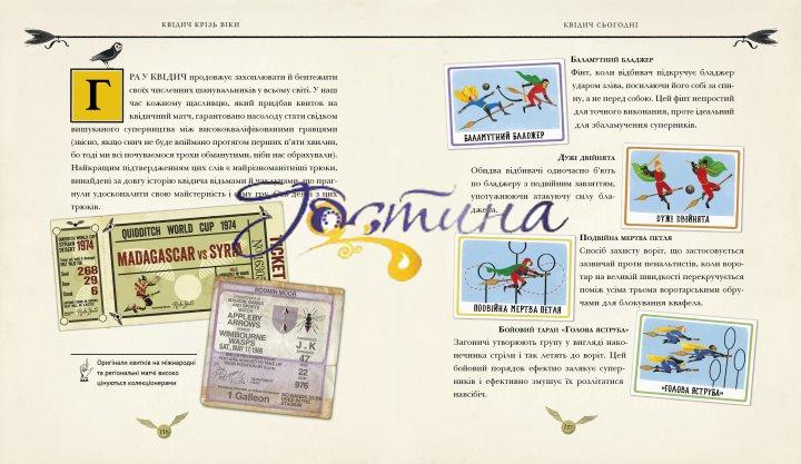 Хапайте свої всеноклі, щоб роздивитися знизу, зверху і зсередини найпопулярніший вид спорту в чаклунському світі! Довідайтесь УСЕ, що ви хотіли знати, і навіть БІЛЬШЕ про квідич від Кенилворті Виспа, який проведе з вами блискавичне турне КУМЕДНОЮ (хоч незрідка й на грані ФОЛУ) історією цього шляхетного виду спорту, а ці чудесні ілюстрації — плід МАГІЧНОЇ уяви маґелки (і двічі кавалерки медалі Кетрін Ґрінвей) Емілі Ґраветт.