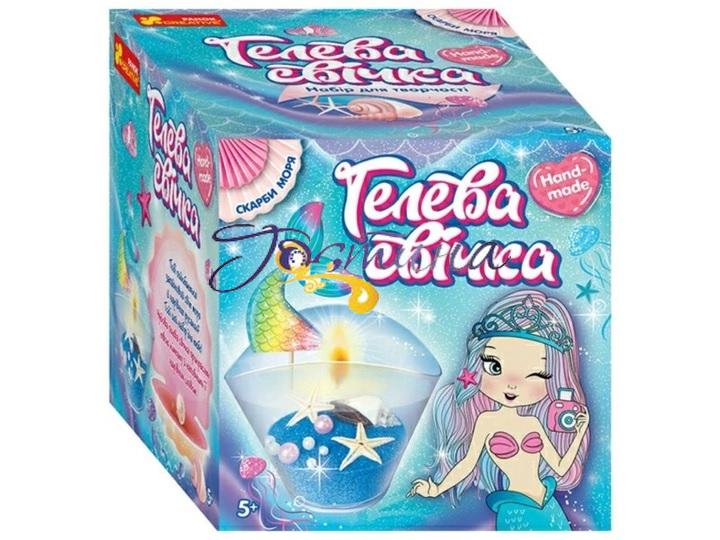 Тобі подобається загадковий світ моря та чарвівних русалок? Тоді цей набір для тебе! Створи незвичайну свічку у морському стилі своїми руками! За допомогою цього набору для творчості не тільки розкриєш секрети виготовлення свічок гелю, а й прикрасиш свій будинок! Сказкова свічка у морському стилі стане найкращим подарунком для маленьких та дорослих принцес! Набір містить:стаканчик, свічковий гель, гніт, кольоровий пісок, мушлі, бусинки, дерев'яну паличку, скотч, картонне прикрасу, покрокову інструкцію.