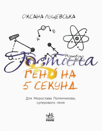 Як стати генієм? Таким великим, як Альберт Ейнштейн! Мабуть, дуже важко. Та все ж варто спробувати. А чи можна стати генієм усього на п’ять секунд? Герой оповідання Оксани Лущевської невтомний і вигадливий. Його історія розказана просто й захопливо, тому стане гарним початком самостійного спілкування із книжкою для читачів-початківців. І змусить не раз усміхнутися. Серію «Читальня» адресовано учням початкової школи для самостійного читання чи опрацювання на уроках. «Читальня» має три рівні складності тексту. Серію розробили та апробували методисти НЦ «Мала академія наук України», експерти з дитячого читання.