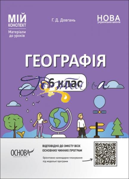 «Мій конспект» — серія №1 серед педагогів України! Пропонований посібник допоможе швидко та якісно, без стресу підготуватися до уроків географії за Концепцією «Нова українська школа». Відповідає основним темам усіх модельних програм курсу «Географія. 6 клас» програм (автори: Запотоцький С. П., Карпюк Г. І. та ін.; Кобернік С. Г., Коваленко Р. Р. та ін.)