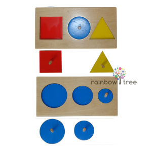 Геометричні пазли, на двох підставках. 1-я підставка: коло, трикутник, квадрат.