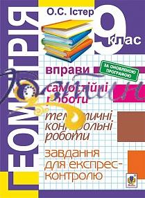 У посібнику запропоновано повну добірку матеріалів з геометрії 9-го класу відповідно до нової програми: вправи, рівні самостійні роботи, тематичні контрольні роботи та завдання для експрес-контролю знань. Призначень для вчителів, методистів та учнів загальноосвітніх навчальних закладів.