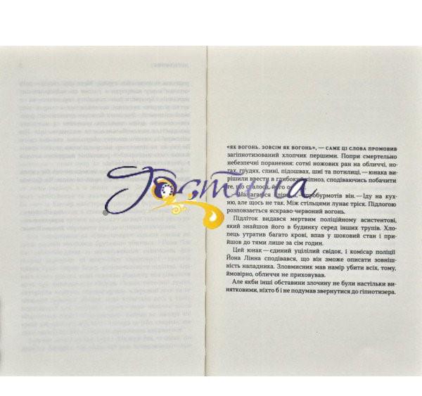 Жахливе потрійне вбивство сталося у передмісті Стокгольма, і комісар поліції Йона Лінна береться за розслідування. Тільки один свідок жахливої різанини залишається в живих - п'ятнадцятирічний хлопець, чию родину вбили на його очах. Злочинець також хотів убити і хлопця - той отримав більше ста ножових поранень і впав у шоковий стан. У відчайдушних пошуках зачіпок, комісар Лінна бачить тільки один варіант: гіпноз. Він закликає доктора Еріка Марію Барка загіпнотизувати хлопця, сподіваючись побачити вбивцю крізь очі жертви.