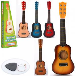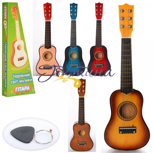 • Шестиструнна гітара. • Металеві струни • У комплекті пластиковий медіатор та запасна струна. • Розміри гітари: 17.5х5.5х53 см. Матеріал: дерево.