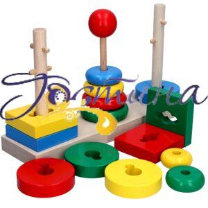 Матеріал – натуральне дерево пофарбоване якісними, яскравими, європейськими фарбами на водній основі. Конструкція виробу надійна та міцна, адже її якість перевірена майже двадцятирічним досвідом виробництва та експлуатацією в дошкільних установах України. РАЗМіР: 26х15х7см. Для дітей від 2 -х років.