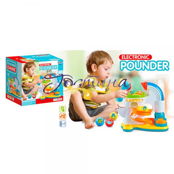 Гра 9818 платформа 33-32-18см, молоточок-стукалка, кульки 4шт, лабіринт, муз, звук, на батарейках, в коробці. Розмір - 35-33-19см, Матеріал - пластмаса, Тип упаковки - коробка.