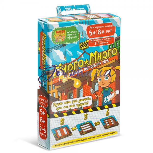 Настільна гра «Багато-багато» дозволить поєднати приємне з корисним - весело провести час і потренувати навички множення. Автор гарантує, що будуть задоволені як діти, так і їхні батьки.   Гра «Багато-багато»: будуємо будиночки, вивчаємо множенняЄ карти будинків з різною кількістю вікон-прорізів. При накладенні однієї карти на іншу число нових вікон дорівнює добутку вікон на картах. Все геніальне просто, і все просте геніально. В «Багато-багато» передбачено кілька режимів. У режимі «Бачу!» - це компанійська гра, яка розвиває уважність, швидкість мислення і навички усного рахунку. У режимі «Велике будівництво» - це повноцінна логічна гра, в якій потрібно прораховувати дії на кілька ходів вперед.   «Бачу!» Збираємо будиночки на швидкістьДля дітей від 5 років. На стіл викладається 6 карт будинків. Гравці по черзі відкривають карти з числами. Відкривши наступну карту, вони наввипередки подумки шукають комбінації карт або суми комбінацій з необхідним числом вікон. Хто першим додумався, кричить: «Бачу!» Після цього він показує, як зібрати будиночок. Якщо все правильно, він забирає карту з числом собі. В іншому випадку - пропускає наступний хід. Грають до останньої карти чисел. Перемагає той, хто зібрав більше карт.   «Велике будівництво» для юних математиків-висотниківДля дітей від 8 років. З карт будиночків складається квадрат 5 на 5. На центральну карту кладеться жетон. Учасники отримують по три карти завдань з числами. Ці карти зберігаються відкрито. Гравці ходять по черзі. Активний гравець пересуває жетон ортогонально на сусідню карту. Карта, на якій зупинився жетон, кладеться в зону будівництва. З карт в зоні будівництва гравець намагається зібрати будинок, щоб кількість його вікон відповідало числу на який-небудь мапі завдання. Вийшло? Гравець забирає використані карти будинків і кладе поверх них карту завдання. Після цього він добирає нову карту завдання https://youtu.be/7_042uCNgWQ