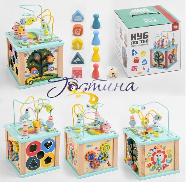 Дерев'яний логічний куб 25205 від якісного виробника Fun Game club поєднує в собі захоплюючі розвиваючі ігри для найменших. Кожна грань куба обладнана оригінальними ігровими панелями, спрямованими на розвиток певних навичок малюка. На першій грані куба малюк зможе пройти хитромудрий пальчиковий лабіринт з оригінальними намистинами різних розмірів, розвиваючи координацію рухів і дрібну моторику ручок. Друга грань обладнана під геометричний сортер, який допоможе наочним образам вивчити геометричні фігури, кольори та форми. Третя сторона розвиваючої іграшки оснащена яскравими шестернями, що обертаються, які посприяють логічному і просторовому мисленню. Четверта сторона призначена для вивчення поняття часу і обладнана яскравим аналоговим годинником з стрілками, що обертаються. На п'ятій грані куба знаходиться лабіринт з цифрами, пересуваючи великі намистини по хитромудрих доріжках малюк вивчить цифри, розвине ручку для письма і потренує посидючість, і терпіння. Шоста грань логічного кубика призначена для дуже захоплюючої настільної гри, в яку можна буде грати всією сім'єю. Гладко відшліфовані деталі виготовлені із якісної деревини та пофарбовані безпечними нетоксичними фарбами на водній основі.