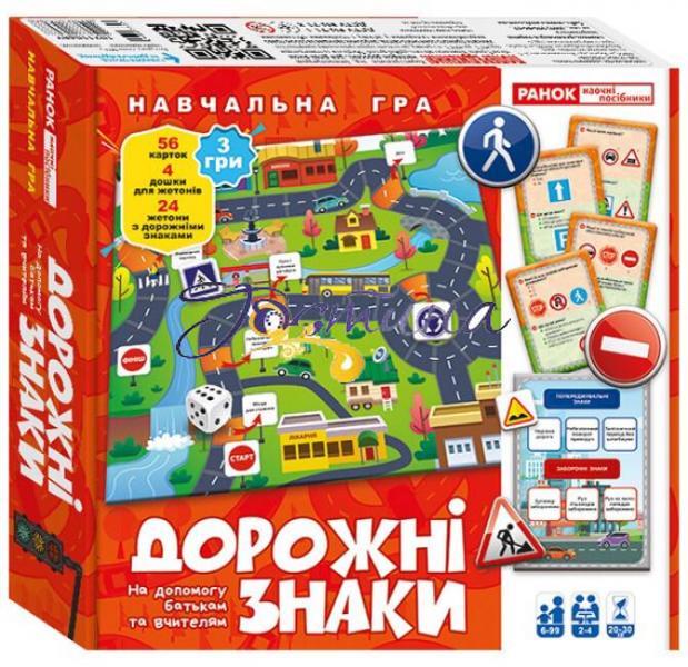 Навчальна настільна гра, яка допоможе дітям в ігровій формі вивчити основні правила дорожного руху і запам'ятати важливі дорожні знаки. Три різні навчальні гри в 1 – це додаткова можливість поторити вивчене та цікаво провести час з дитиною.