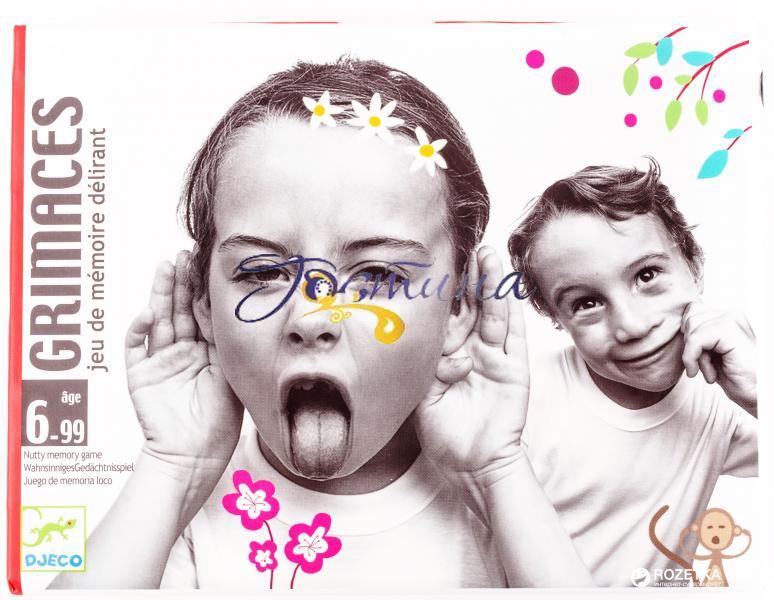 Гра Djeco Гримаси - весела і захоплююча дитяча гра. Вам не подобається, коли ваша дитина кривляється? Настільна гра 'Гримаси' дозволить перетворити кривляння в корисне і розвиваюче заняття. Діти можуть грати самостійно, участь в грі можуть взяти і дорослі. Головне - веселощі гарантовано всім! Колода дозволяє грати двома командами по дві людини або непарній кількості гравців. Завдання гравців - вгадати гримасу.Гра розвиває міміку і комунікативні здібності, пам'ять, реакцію, уважність. У наборі: 72 карти (36 великих і 36 маленьких) Гра розрахована мінімум на 3-5 гравця.Рекомендовано для дітей у віці від 6 років. https://www.youtube.com/watch?v=9yR0PHJNIIQ