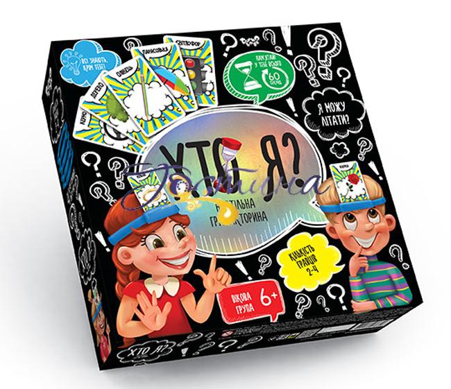 Хто я? - Настільна гра від Данко (українською)Весела гра в асоціації для компанії, як дитячої, так і дорослої! Гра подарує масу позитивних емоцій і відмінний настрій!Учасникам гри належить вгадати предмет або персонаж, яким він є, задаючи запитання. Фішка в тому, що інші учасники знають правильну відповідь, і всіляко намагаються заплутати того, хто відгадує. Картки-персонажі вибираються випадковим чином і одягаються на голову за допомогою спеціальних наголовників, що робить гру ще більш кумедною.ХарактеристикиВік: від 8 роківМова українськаЧас гри: 60 - 90 хвКількість гравців: 2 - 6Розмір упаковки: 40 x 30 x 5 смУ комплекті: 162 картки зі словами, 6 допоміжних карток, правила гри, 4 пластикових + 2 картонних обруча на голову для гри, пісочний годинник, фішкиВиробник: Данко Тойз, Україна