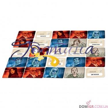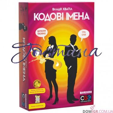 У грі «Кодові Імена» учасники перевтілюються у представників спецслужб двох ворожих штабів. Гравці діляться на дві команди. Кожна команда обирає зв'язківця, а інші учасники стають агентами. У центрі столу з карт кодових слів формується ігрове поле у вигляді таблиці 5х5. Поле являє собою локацію, де агенти повинні встановити контакт зі шпигунами. Зв'язківці випадковим чином вибирають картку-ключ. На ній вказано розташування агентів, мирних жителів та вбивці. Картка розташовується між зв'язківцями так, щоб її не бачили інші учасники. Команди ходять по черзі. Щоб агенти могли змогли встановити контакт зі шпигунами, зв'язковий дає їм підказки у вигляді кодових слів. Це своєрідний пароль, який є комбінацією слова і числа. Цифра відповідає кількості слів на полі, до яких дається підказка. Наприклад, зв'язківцю потрібно натякнути на слова «Дніпро» та «клен». У них є щось спільне. В річці є вода, яка також присутня всередині дерева. Тому він називає кодове слово «вода:2». Коли команда відгадує правильно, на відповідні карти слів викладаються переможні жетони. Якщо агенти помилилися, хід переходить до суперника. Стикнувшись з убивцею, команда програє. З цим хлопцем краще не жартувати! Перемагає команда, яка першою встановить зв'язок з усіма своїми агентами. ДЛЯ КОГО ГРА Настільна гра «Кодові Імена: Гра слів» зацікавить шанувальників веселих компанійських ігор на асоціації.  відеоогляд: https://youtu.be/1nLAG-UnAmA