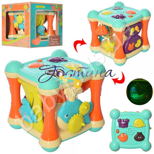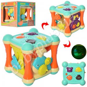 Розвиваюча іграшка Логічний куб (9910) виконана в яскравому і привабливому дизайні використовуючи контрастні кольори для залучення й утримання уваги дітей. У куба 6 ігрових граней, на кожній з яких розташована логічна гра. Ребра куба виконані у формі гантельки з вилитими елементами декору, які будуть стимулювати тактильне сприйняття.