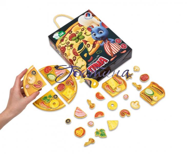 Комплектація: 4 шматочки піци, 2 тости, 41 магнітний інгредієнт.