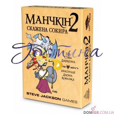 Яким великим б не було підземелля, як широко б не сягали його кам'яні коридори, як глибоко б не йшли під землю його печери, справжньому манчкіну цього завжди буде недостатньо. Прогулявшись під склепіннями великих залів, заглянувши в кожен темний куточок, обнишпоривши кожну крихітну кімнатку і комору, спустошивши всі скрині і зібравши лут з усіх, навіть найбільш безневинних монстрів, він рушить далі, щоб знайти велич і ще більше кльових шмоток, скарбів і цілющих еліксирів , якими він спробує доверху набити свій бездонний рюкзак. Навіть легендарна Скажена Сокира, наймогутніша зброя в королівстві, що не вгамує нестримну тягу манчкіна до нескінченної крутизни.Увага! Будьте обережні! Оскільки сміх продовжує життя, граючи в 'Манчкін 2: Скажена Сокира (Munchkin 2: Unnatural Axe)' Ви ризикуєте жити вічно!Завдяки розширенню Манчкін 2: Скажена Сокира (Munchkin 2: Unnatural Axe) гравці зможуть додати до своєї настільніої гри Манчкін (Munchkin) велику кількість нових карт дверей і скарбів, щоб зробити свої пригоди ще веселіше і цікавіше. Просто замішайте нові карти до відповідних колод. Перш за все, до вашого походу за славою і шмотками примкне новий клас: орки! Ці хлопці настільки смердючі, що навіть самі мерзенні прокляття не хочуть з ними зв'язуватися. Граючи цією расою ви завжди можете втратити один рівень і звільнитися від будь-якого прокляття. А вигравши бій з перевагою в 10 і більше одиниць бойової сили, ви можете відхопити додатковий рівень. Крім цього кожна раса і клас отримає по одній додатковій карті. Разом з цим доповненням на голову невдалим манчкінам впаде ще дюжина нових прокльонів: на великі ноги жодне взуття НЕ налізатиме, а маленькими ручками у вас не вийде забрати жодної великої шмотки. Нова редакція правил знизить рівень всіх манчкінів, а клята шняга причепиться до однієї з ваших шмоток, яка вже не буде настільки корисна своєму власникові. Ви також отримаєте в своє розпорядження не меншу кількість різного роду бафів і підлостей: позбавите опонента усього видобутого в бою скарбів, зробивши монстра банкрутом, або перетворите будь-яку істоту в жахливого андеда (і не забувайте, що тепер в бою до нього може приєднуватися інша нежить) . Загалом, кілька нових крутих трюків в рукаві ніколи не завадять.Звичайно ж, з розширенням підземелля в ньому з'явилося безліч нових монстрів. Причому кожна з майже тридцяти прибулих в підкріплення тварюк має унікальну властивість... Наприклад, рука-повзун зможе перейти на вашу сторону, якщо ви подаруєте їй хотільне кільце. Мержавку-похітніцю можна атакувати тільки в компанії манчкіна протилежної статі, побита піньята нагороджує скарбами всіх героїв, незалежно від того, хто з нею боровся. Гігантський скунс зменшує вартість всіх ваших шмоток вдвічі і, взагалі, тобі ніхто не допоможе в наступному бою, поки ти не позбудешся своїх шмоток. Є навіть монстр який має особливу властивість по суботах. Таким чином, нудьгувати вам в нових куточках підземелля точно не доведеться.Природно, з багаторазовим збільшенням кількості кімнат, в них з'явилося ще більше набитих скарбами скринь. Ви зможете отримати в своє розпорядження милого наплічного дракончика, захистити свою честь і гідність шипованним гульфіком або приладнати собі на спину рукобойник, отримавши пару додаткових рук, які ніколи не будуть зайвими в підземеллі. Захистіть себе ві