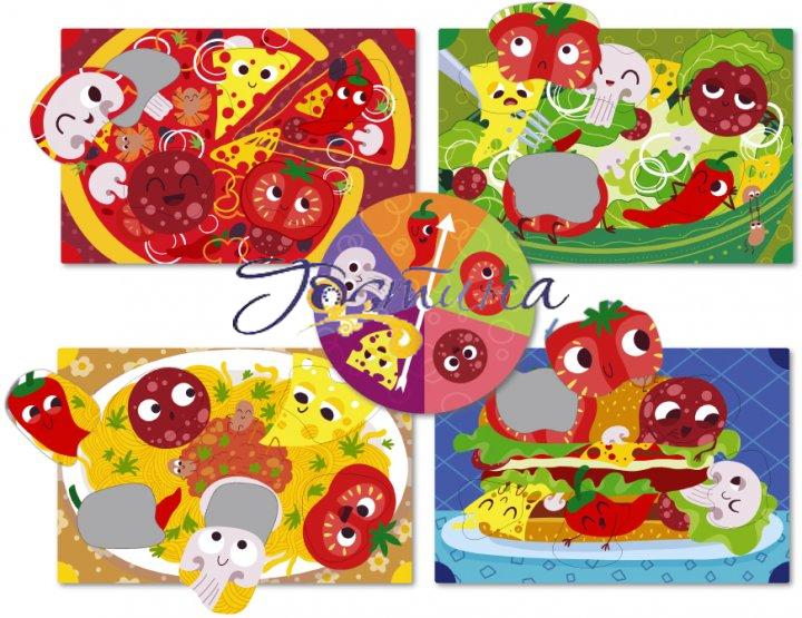 В процесі гри необхідно заповнити картку-планшетку з отворами для фігурок. Крутимо колесо та збираємо свої фігурки. Внаслідок цього на кожній із картинок збирається захопливий сюжет – тема для оповідань і дискусій.