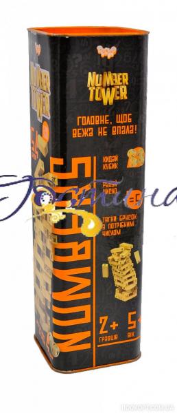 Number Tower - це нова версія класичної гри! Як і раніше, з дерев'яних блоків будується вежа. Завдання гравців полягає в тому, щоб по черзі витягувати блоки та переміщувати їх на вершину вежі, але на відміну від класичної гри, для ускладнення завдання у кожен блок має своє числове значення. Учасники кидають кубик та переміщують блоки з відповідними номерами. Гра триває до тих пір, поки вежа не впаде! Number Tower відмінно тренує дрібну моторику рук і допомагає зосередитися. Ця настільна гра захопить дітей і дорослих, підійде для всієї родини та веселих компаній.