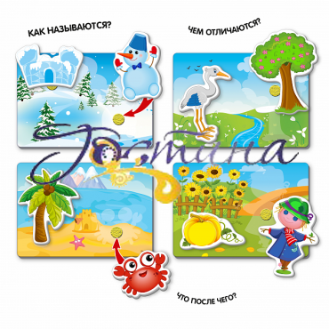 Які пори року існують? Чим вони відрізняються? Який сезон починається після літа? Знаходь відповіді на ці запитання та вивчай їх разом з грою на липучках «Пори року».