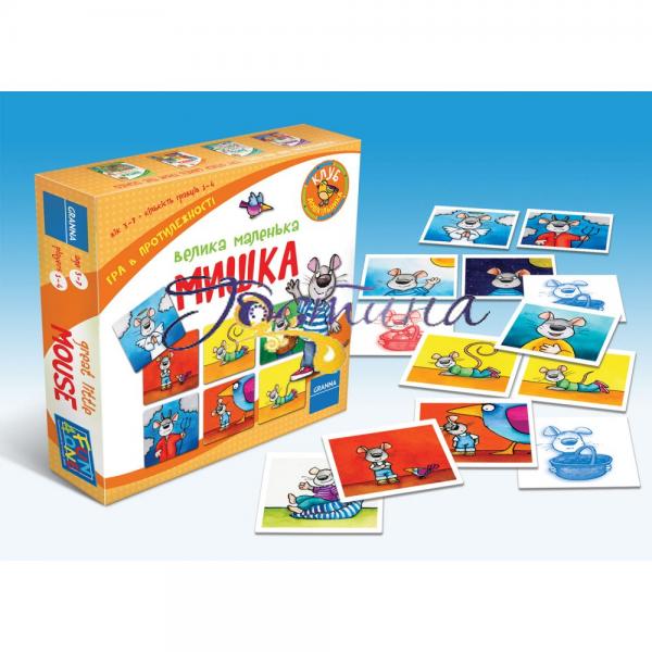 Гравці відкривають всі свої картки та викладають перед собою. Під час ходу гравець відкриває одну картку з червоною мишкою. Якщо вона утворює з однією з його карток пару протилежностей, гравець відкладає цю пару убік – наприкінці гри вони зараховуються як бали. Якщо пару не знайдено - повертає картку на місце. Виграє той гравець, хто зможе зібрати найбільше пар. Особливості: на картках заховалися протилежності, шукаймо їх! в грі застосовується принцип мемо. Дитина навчається шукати, порівнювати, розповідати. Вміст коробки: 54 картки, що утворюють 27 пар; правила гри.
