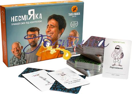 Використовуй свою витримку і контроль над власними емоціями, та примусь інших гравців засміятися! Думаєш тобі це вдасться? Втримаєш в собі вибух «розпираючого» сміху?Маємо деякі сумніви щодо цього! Збери своїх найкращих друзів і переконай усіх, що ти найкрутіший «Несміяка»! Це нова розважальна гра, в яку ви ще точно не бавились! Чудовий вибір, якщо ви і ваші друзі маєте хороше почуття гумору і хочете весело провести час. Несміяка існує у двох версіях: дитяча та доросла (з позначкою 18+), у яку ми додали ще більше дорослого гумору Правила гри — прості та зрозумілі.Основне завдання гри – не засміятися, а також майстерно виконувати всі додаткові вимоги, щоб розсмішити своїх суперників. Сміхом можна вважати, за попередньою домовленістю, навіть посмішку. У грі використовуються 4 різних колоди карток із окремими словами, умовами та завданнями.