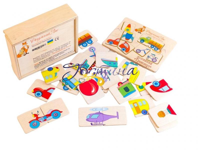 У наборі Половинки «Транспорт», 24 деталі, тобто 12 основних видів транспорту.