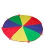 Являє собою велику тканину, круглої форми, яка розділена на кілька яскравих секторів. Призначена для колективних ігор. Тим самим розвиває комунікаційні навички, вміння домовлятися, грати за правилами. Також це відмінний інструмент для знайомств. Під час гри з парашутом, діти отримують безліч нових відчуттів, позитивні емоції та гарний настрій.