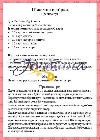 Гра спеціально для дівчаток. Запросіть одну або декілька подружок до себе в гості з ночівлею. Проведіть вечір, займаючись зачісками та декоративною косметикою, розкажіть одна одній свої секрети, цікаві історії і, найголовніше, повеселіться!