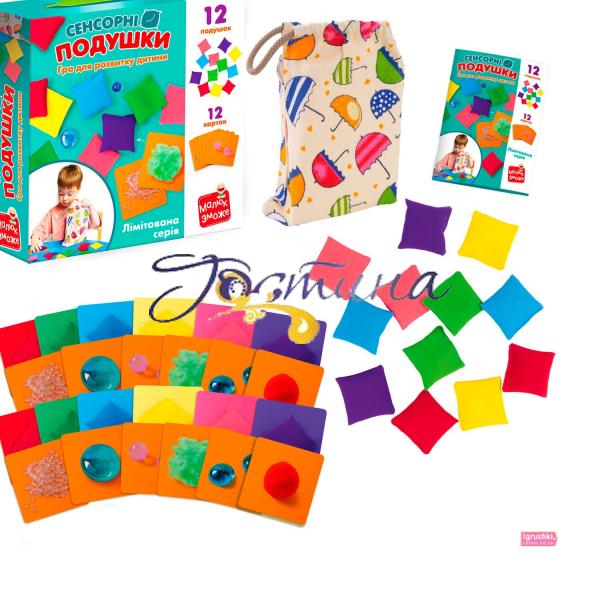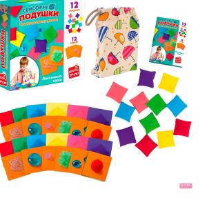 Грайтеся та навчайтеся з чудовим набором подушечок та карток із зображеннями! Така гра допоможе розвинути увагу, уяву та дрібну моторику!