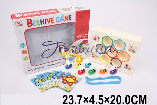 Цікава розвиваюча іграшка з музичним супроводом для самих маленьких. Суть гри полягае в тому, щоб дитина за допомогою спеціальних щипців розмістила бджілочок по їх стільниках за кольорами. Граючи в таку веселу гру, ваша дитина буде розвивати логічне Милівка, моторику, а також вивчати кольору за допомогою карток. У комплект входять: - стільники: - 7 різнокольорових бджілок, - щіпчіеи, - 7 карток з квітами. Виготовлена іграшка з якісного пластику і працює від 2-х батарейок типу ААА в комплект не входять. Розмір іграшки: 16,5 х 13,5 х 4 см. Розмір упаковки: 23,5 х 4,5 х 20 см. Упаковка: коробка.