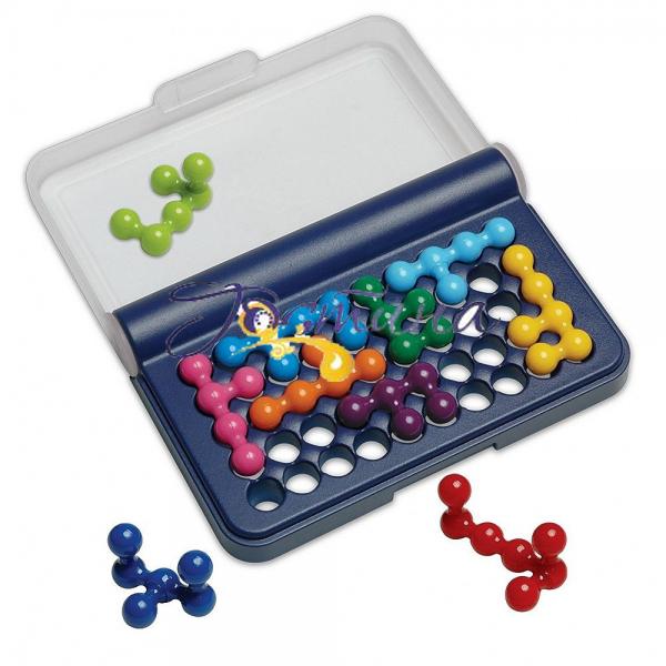 Багаторівнева логічна гра від 5 років 120 завдань Тримайте ваш мозок у формі! - Спробуйте знайти на ігровому полі місце для всіх 3D деталей, якщо ви можете побачити на малюнку із завданням тільки двомірне зображення деталей та отвори. - Оригінальна приваблива гра, яка вимагає іноді зосередитись, щоб знайти нестандартний підхід до правильних рішень всіх 120 завдань!   Правила гри 1. Оберіть завдання в буклеті та розташуйте відповідні деталі на ігровому полі. Ці деталі не змінюють свого положення. 2. А тепер вам потрібно знайти місце для решти деталей на ігровому полі.  ·         Кожна деталь має дві виступаючи частини. На одній стороні одна кулька (А), в іншу сторону повернуті дві кульки (В) ·         Покладіть деталь таким чином, щоб вона потрапила виступаючими частинами в отвори на ігровому полі. ·         Якщо ви хочете змінити положення деталі, це можна легко зробити, натиснувши на неї пальцем під днищем ігрового поля.   3. Ви знайшли рішення головоломки, якщо змогли розташувати всі деталі на ігровому полі таким чином, щоб не залишилось жодного видимого отвору, всі кульки вставлені в отвори та поверхня поля залишилась плоскою. Існує лише один вірний варіант рішення кожної головоломки. Ви зможете знайти його в кінці буклету.