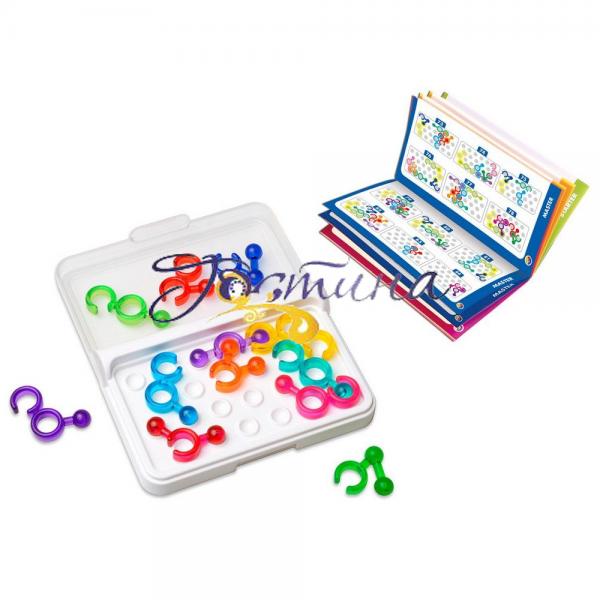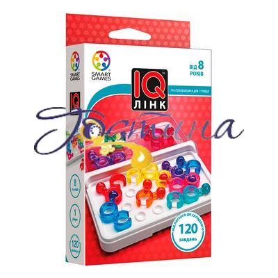 Зможеш знайти відсутні зв’язки між деталями? Встанови всі деталі на ігрове поле. Будь уважним! Гра містить 12 деталей, в кожній деталі 3 елемента, яки повинні зайняти 3 чарунки, але чарунок на полі тільки 24. Відкриті кільця та кулі можуть займати одну чарунку якщо знайдеш правильні зв’язки. «IQ- лінк» – це приваблива компактна дорожня гра з найбільш складними завданнями з серії ігор IQ-тренування.  ГРА СТИМУЛЮЄ ТАКІ КОГНІТИВНІ НАВИЧКИ: концентрацію; вирішення проблем; логіку.