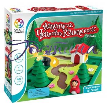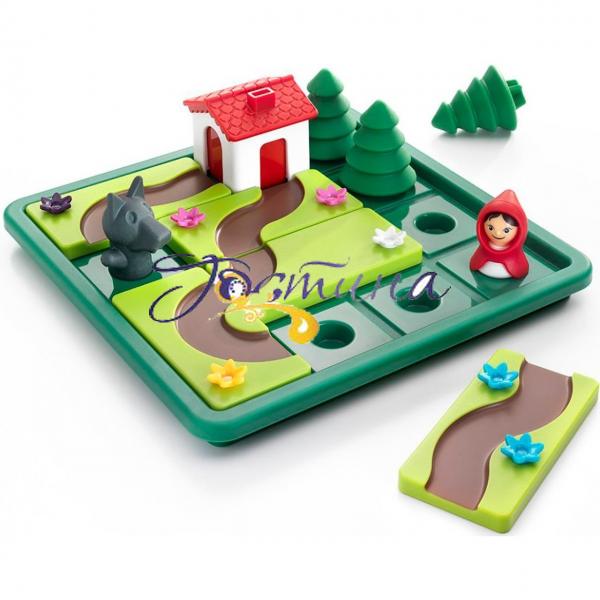Відкрийте для себе магію популярної казки через унікальну гру-головоломку для дошкільнят. Чи зможете ви допомогти Червоному Капелюшку знайти правильний шлях до будинку її бабусі? Метою гри є з’єднання початкової та кінцевої позицій за допомогою плиток із доріжками. Помістіть фігурку дівчинки, будинок і дерева на ігрове поле відповідно до завдання. Використовуйте деталі головоломки, щоб зробити доріжку до будинку бабусі. Після цього можете грати в гру з вовком! Зробіть дві доріжки до будиночка бабусі: одну для Червоного Капелюшка, другу – для вовка. Але будьте обережні – вовк може потрапити до будиночка швидше.  Легкі завдання вимагають всього лише однієї деталі, яку можна розмістити на ігровій дошці. Для найбільш важких завдань вам потрібні всі 5 штук. Для дорослих завдання, що складається з 1 або 2 частини головоломки, здається дуже простим, але якщо ви поспостерігаєте за дітьми 4-річного віку, ви побачите, що їм часто доводиться випробувати кожну деталь головоломки одну за іншою. Вони не можуть вирішити головоломку в їхній голові й повинні спробувати це з реальними деталями. Коли діти подорослішають або потренуються вирішувати завдання цієї головоломки, ви помітите, що вони починають грати по-іншому. Гра 'Маленький Червоний Капелюшок' містить 48 завдань (24 з вовком і 24 без нього) та оригінальну сучасну історію в малюнках для дружнього сімейного дозвілля.  Гра стимулює такі когнітивні навички: - просторову уяву; - планування; - вирішення проблем; - концентрацію; - зорове сприйняття. Вміст коробки: - 5 деталей з доріжкою; - 2 фігурки, 3 дерева, 1 будинок; - буклет із 48 завданнями (24 без вовка, 24 з вовком); - книжка-казка з малюнками.