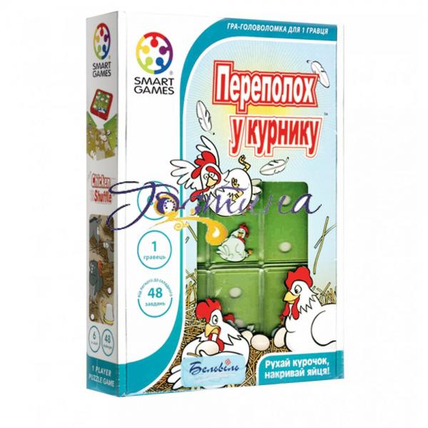 Кожній квочці по яєчку! • На фермі ґвалт та квоктання! Кожна квочка хоче знайти своє яєчко та спокійно його висиджувати. Але це не так просто, як здається.• Розмістіть квочок так, щоб кожна сиділа на одному яєчку.• Чи всі вони задоволені, чи треба спробувати ще?• Вміст: 48 карток - завдань, ігрове поле з прозорою кришкою та прямокутниками, які можна переміщувати.