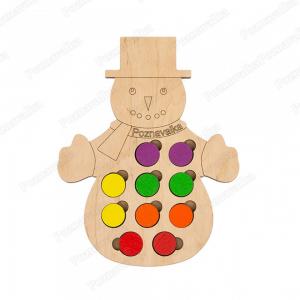 Гра Сніговик - матеріал для педагогів і батьків, розроблений для узконаправленного розвитку: при грі з даної іграшкою Ваш малюк інтуїтивно зрозуміло починає запам'ятовувати кольору і вчити рахунок від одного до десяти, при цьому розвиваючи дрібно моторику.