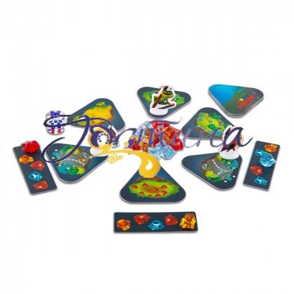 Комплектація: 8 карток-завдань; 11 міні-полів; 21 камінь (по 7 штук різного кольору); пластиковий кубик; 3 фішки із зображенням героїв; листівка з розповіддю; інструкція; посилання на аудіоказку. Розмір коробки: 20 ? 20 ? 6,8 см.
