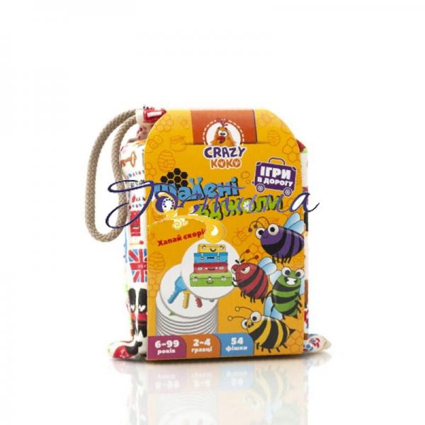 Складайте комбінації бджілок наввипередки! Весела та динамічна гра з фішками для родини та друзів. Правила прості та зрозумілі! Складайте бджілок відповідно до послідовності кольорів на малюнку. Той, хто впорається першим, хапає фішку собі. Переможе найшвидший та найуважніший гравець! Гра тренує уважність, швидкість реакції, пам’ять та логічне мислення. Комплектація: 54 фішки, інструкція.