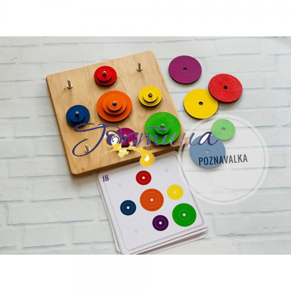 Комплектація: 1 плашка під фігури (20 * 20 см)кільця великі (6 шт 6 см)кільця середні (6 шт 4 см)кільця маленькі (6 шт 2,5 см)завдання 18 штматеріал: Березова фанера вищого сорту і акрилові фарби на водній основі.вік від 1 року до 5 років